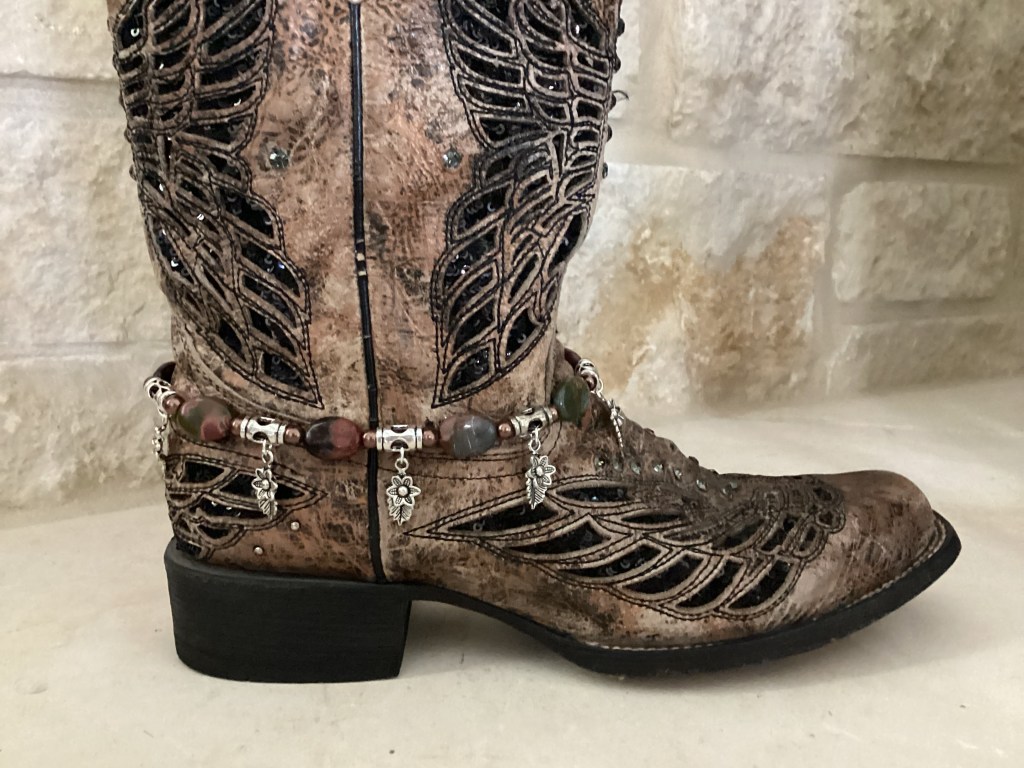 Boot Bracelets Tiger Eye$30.00 Rainforest Rhyolite$30.00 Amethyst$30.00 Magnasite$30.00 Blue Howlite$30.00 Zebra Jasper$30.00 Ruby Zoisite$30.00 Asian Print Bead$30.00 Red Creek Jasper$30.00 Banded Agate$30.00 Outback Jasper$30.00 Magnasite$30.00 Blue Howlite$30.00